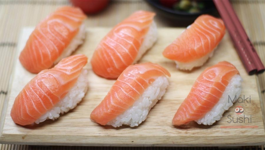 Savourez le saumon frais sur un lit de riz vinaigré pour une bouchée exquise. (2 pièces)