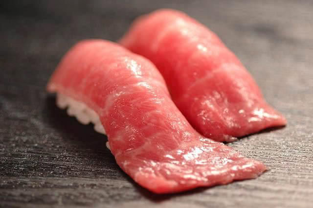 Le thon frais sur un lit de riz vinaigré pour une bouchée délicieuse. (2 pièces)